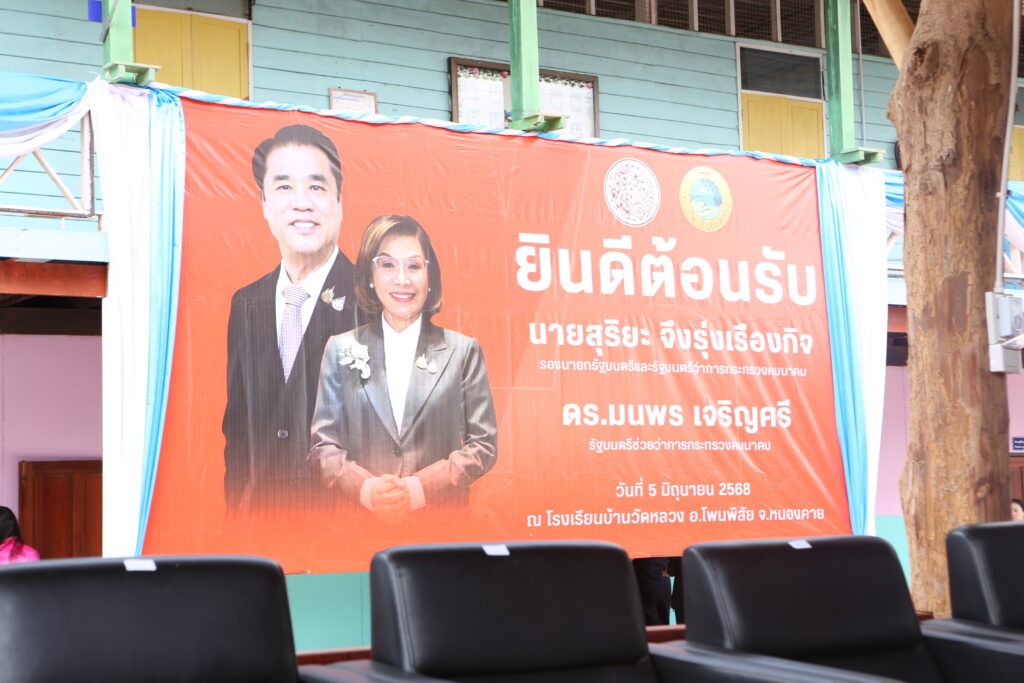 วันพฤหัสบดีที่ 5 มิถุนายน พ.ศ. 2568 เวลา 13.30 น. นางสนม เสริฐผล ผอ.สพป.หนองคาย เขต 2 พร้อมด้วยนางรำเพย ทินกระโทก ผอ.กลุ่มนิเทศ ติดตาม และประเมินผลฯ และบุคลากรในสังกัด ร่วมต้อนรับ นายสุริยะ จึงรุ่งเรืองกิจ รองนายกรัฐมนตรีและรัฐมนตรีว่าการกระทรวงคมนาคม และดร.มนพร เจริญศรี รัฐมนตรีช่วยว่าการกระทรวงคมนาคม พร้อมคณะ ในโอกาสการติดตามกิจกรรมปรับปรุงการแบ่งทิศทางการจราจร เพื่อความปลอดภัยทางหลวงหมายเลข 212 ณ โรงเรียนบ้านวัดหลวง ต.วัดหลวง อ.โพนพิสัย จ.หนองคาย