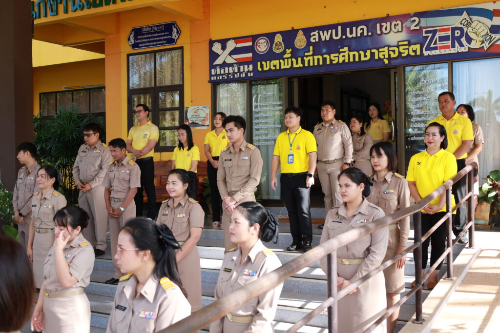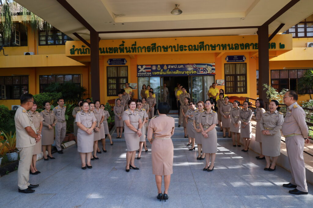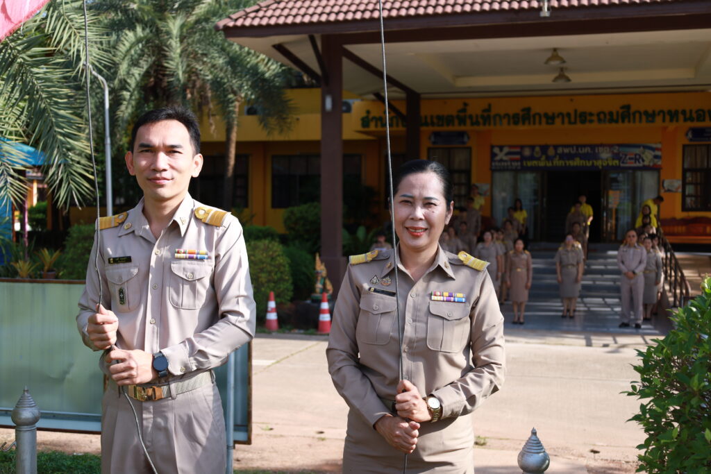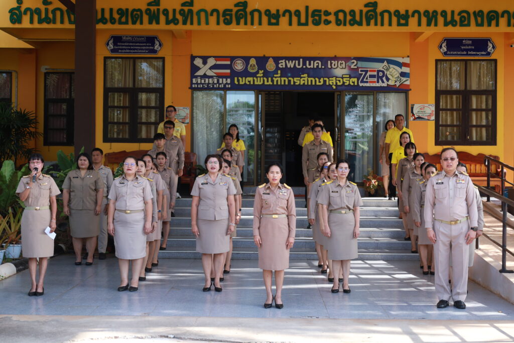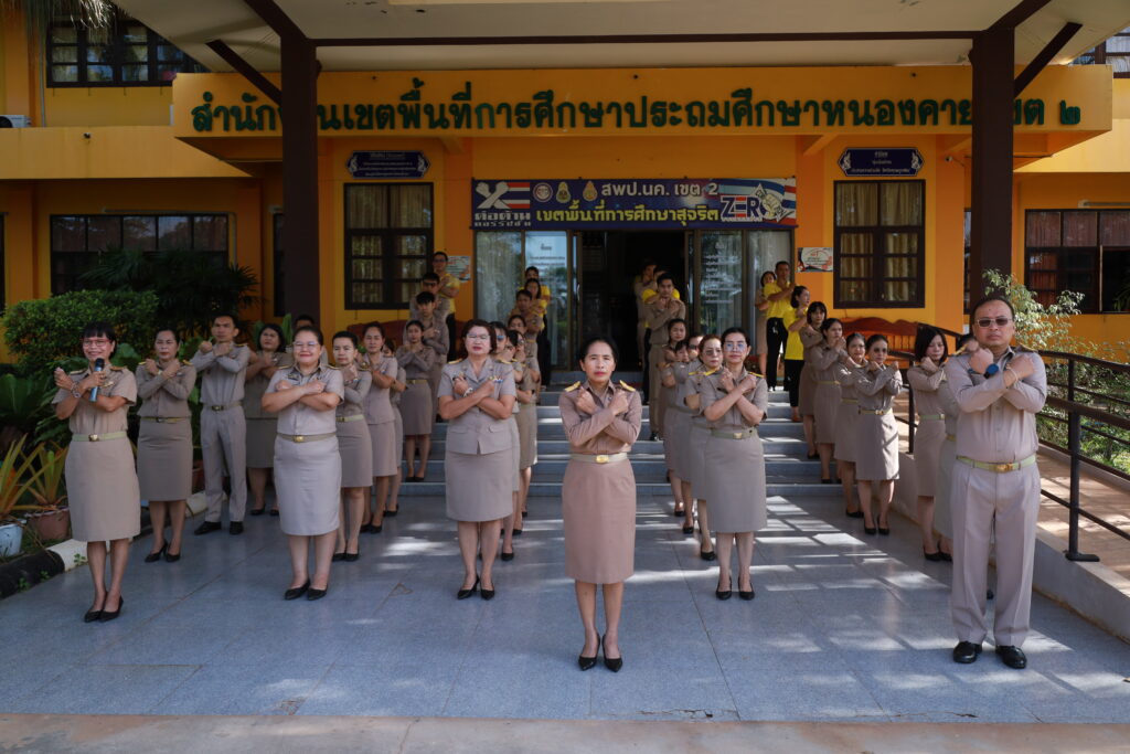 วันจันทร์ ที่ 6 ตุลาคม พ.ศ. 2568 เวลา 08.00 น. นางสนม เสริฐผล ผอ.สพป.หนองคาย เขต 2 พร้อมด้วยนายพัชระ งามชัด รอง ผอ.สพป.หนองคาย เขต 2 นายบัณฑิต เดชขันธ์ รอง ผอ.สพป.หนองคาย เขต 2 นำคณะผู้อำนวยการกลุ่ม/หน่วย และบุคลากรในสังกัด ดำเนินกิจกรรมเข้าแถวเคารพธงชาติ สวดมนต์ไหว้พระ และกล่าวคำปฏิญาณตนเขตสุจริต เพื่อแสดงอัตลักษณ์ของความเป็นไทยตระหนักถึงความสำคัญของชาติ ศาสนา พระมหากษัตริย์ และความมีวินัยของข้าราชการ ณ บริเวณสำนักงานเขตพื้นที่การศึกษาประถมศึกษาหนองคาย เขต 2
