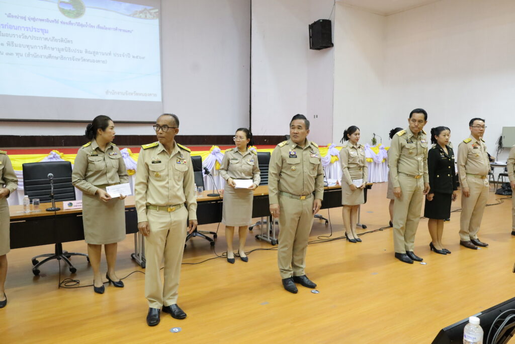 ก่อนระเบียบวาระการประชุม มีพิธีมอบรางวัล ประกาศ และเกียรติบัตรแก่หน่วยงานและบุคคลผู้มีผลงานดีเด่น พิธีมอบทุนการศึกษาของ มูลนิธิเปรม ติณสูลานนท์ พิธีมอบโล่เชิดชูเกียรติแก่คนดีศรีจังหวัด การขับเคลื่อนการใช้งานระบบ e-Office จังหวัดหนองคาย ภายใต้ระบบ GDCC รวมถึงการรายงานผลการปฏิบัติงานด้านเรื่องร้องเรียนร้องทุกข์ของศูนย์ดำรงธรรม สถานการณ์โรคที่ต้องเฝ้าระวังและภัยสุขภาพ และสรุปภาวะการค้าชายแดน พร้อมระเบียบวาระอื่น ๆ ที่สำคัญต่อการพัฒนาจังหวัด